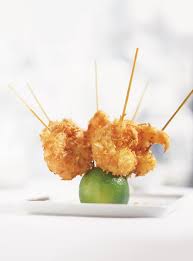 - 4. Dredge the shrimp in the flour mixture and shake to remove any excess. Dip in the beaten eggs then roll in the coconut, pressing firmly.
