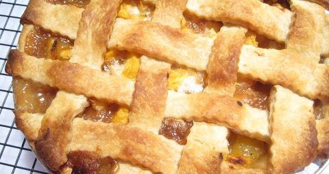 - In a separate bowl, mix together the flour, sugar, cinnamon, nutmeg and salt. Pour over the peaches and mix gently. Pour into the pie crust and dot with butter.